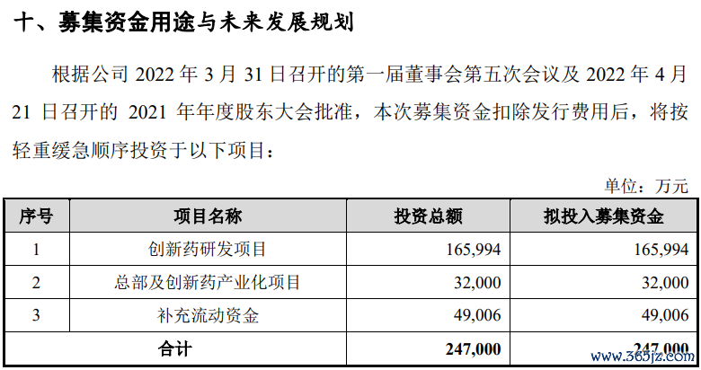 轩竹生物此前申报科创板IPO募集资金,拟合计投入24.7亿元用于3个项目,分别是创新药研发项目、总部及创新药产业化项目、补充流动资金。