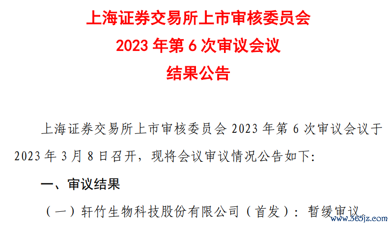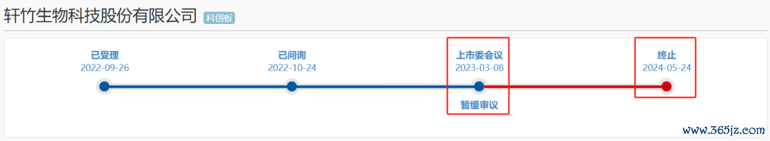 2022年9月26日,轩竹生物申报科创板IPO获受理,但是在2022年10月14日被问询后,2023年3月8日上交所上市委会议决定暂缓审议。