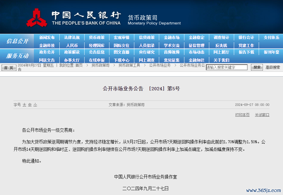 政治局会议明确“有力度的降息”后 央行今日火速降息 政策利率下调幅度为近四年最大股票杠杆实盘